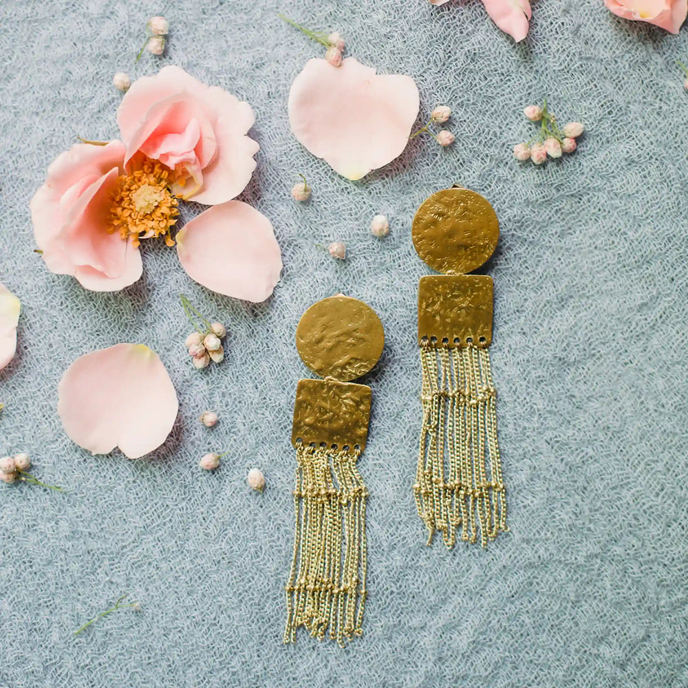 A really pretty match to Lingua Nigra's "If the Rain Comes First" earring, this pendant is delicate to wear daily and bold enough to dress up a basic outfit. It is made of reticulated brass, hangs from a vintage chain, and is plated in 22kt gold.