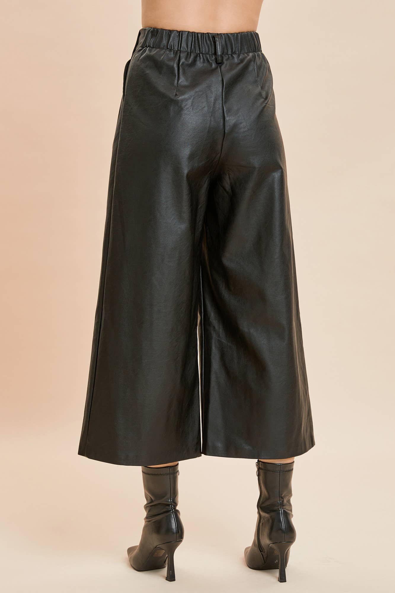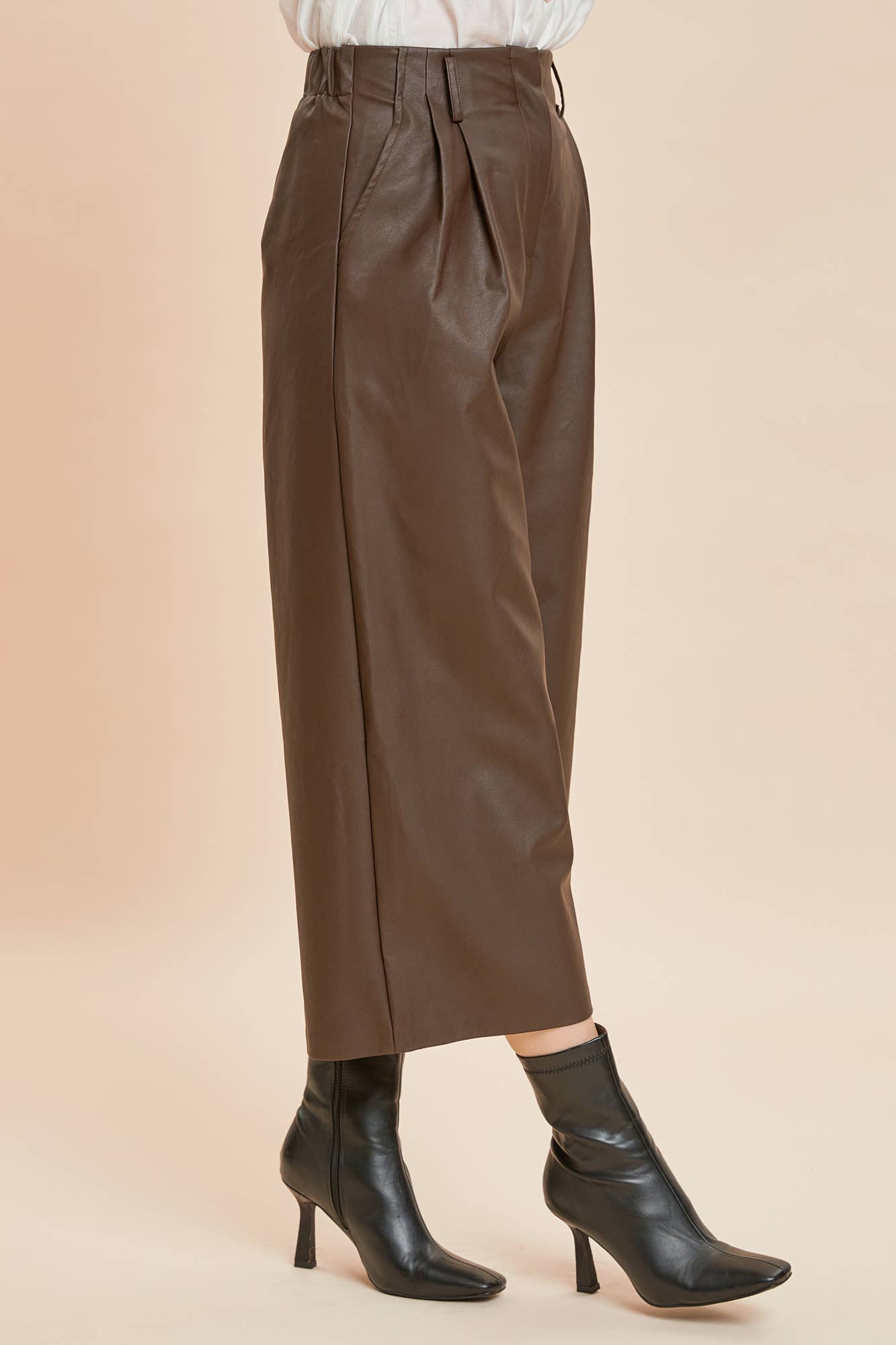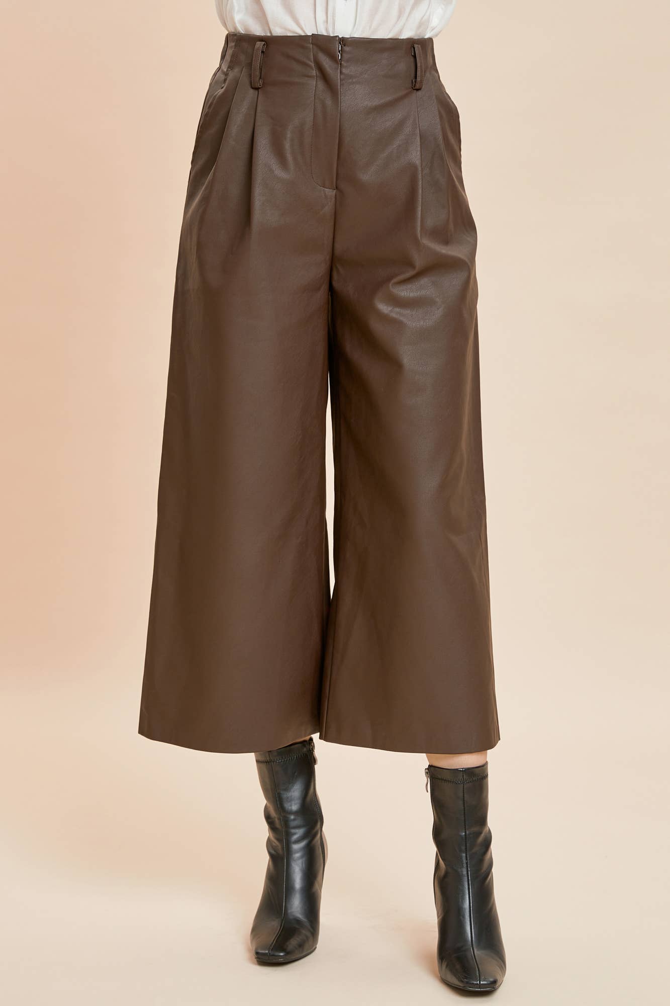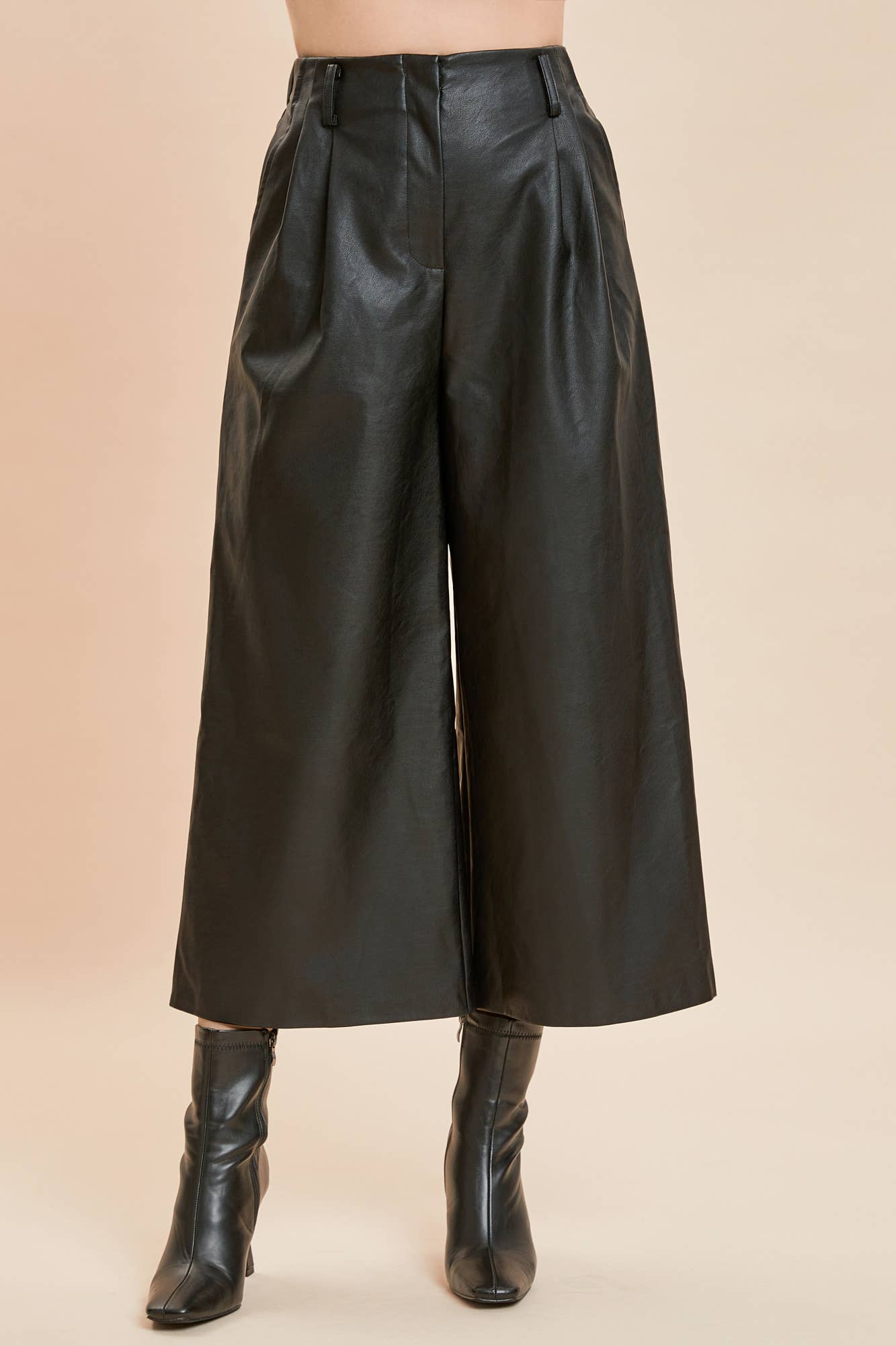 TWO PINTUCK WIDE-LEG LEATHER PANTS. Beautiful pant but these were produced with a closure clasp that needs reinforcement!