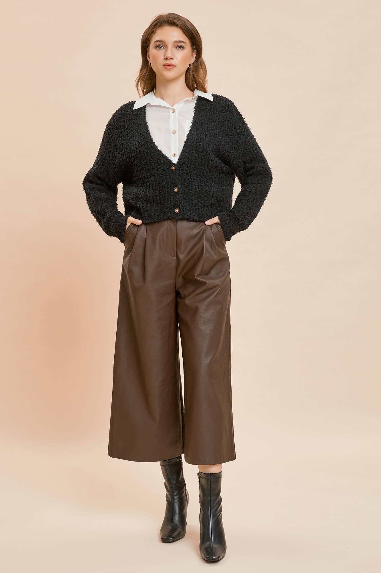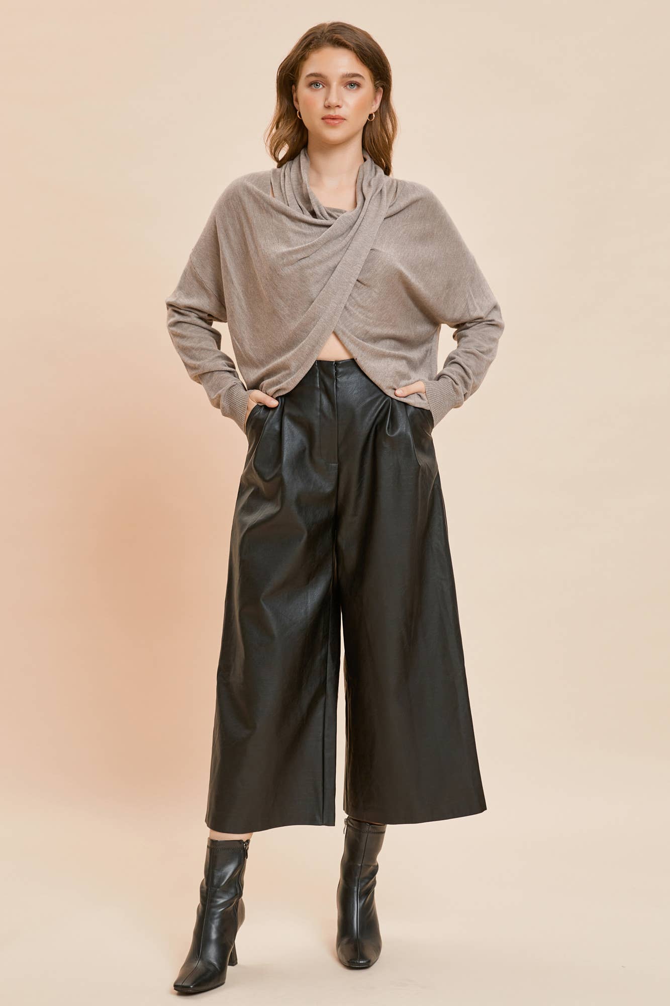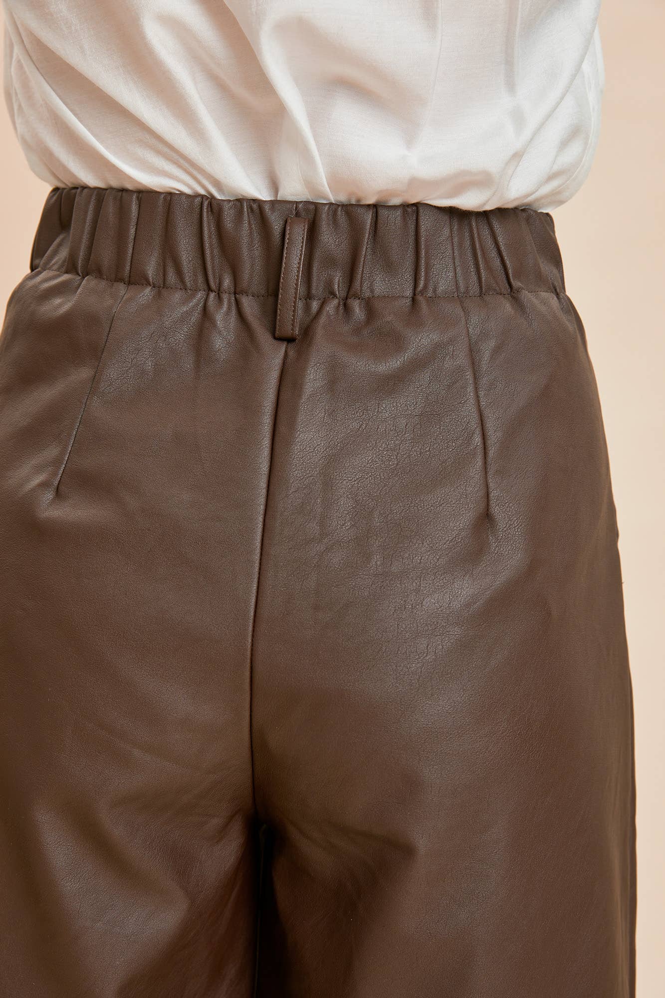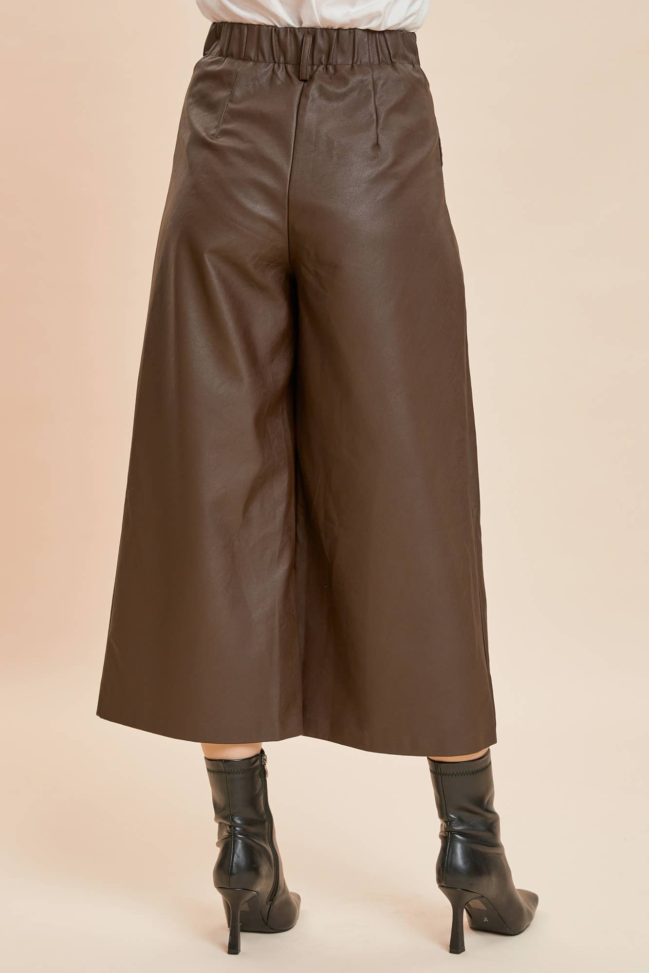 TWO PINTUCK WIDE-LEG LEATHER PANTS. Beautiful pant but these were produced with a closure clasp that needs reinforcement!